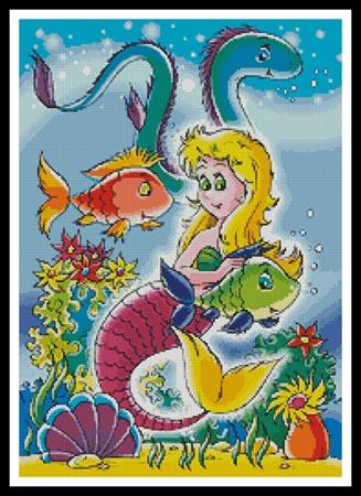 Mermaid With Fish And Eels - Artecy Cross Stitch