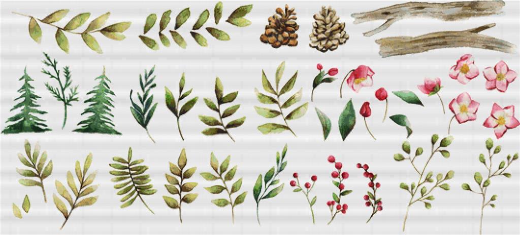 Set Of Winter Flowers And Leaves - X Squared Cross Stitch
