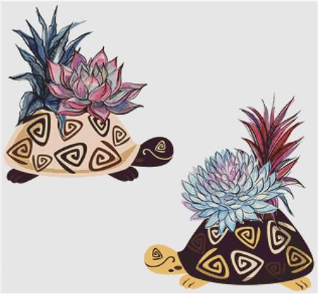 Succulents In Tortoise Pots II - X Squared Cross Stitch