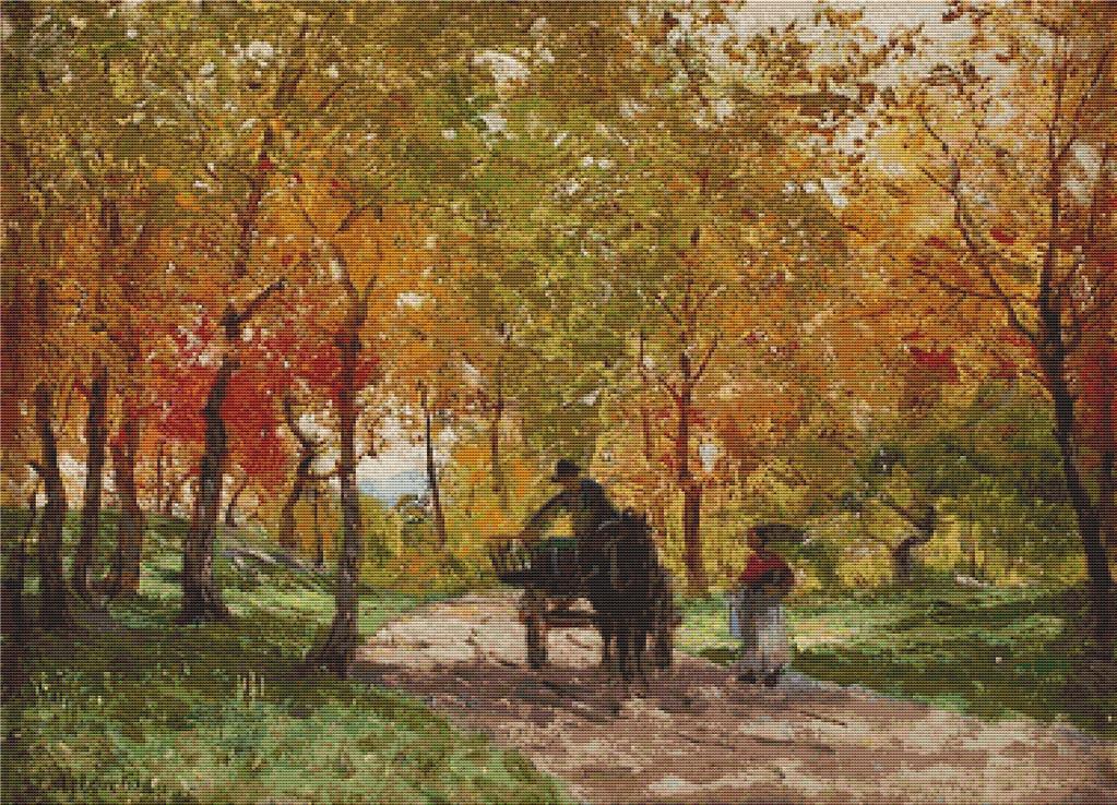 Wagon In The Autumn Landscape - X Squared Cross Stitch